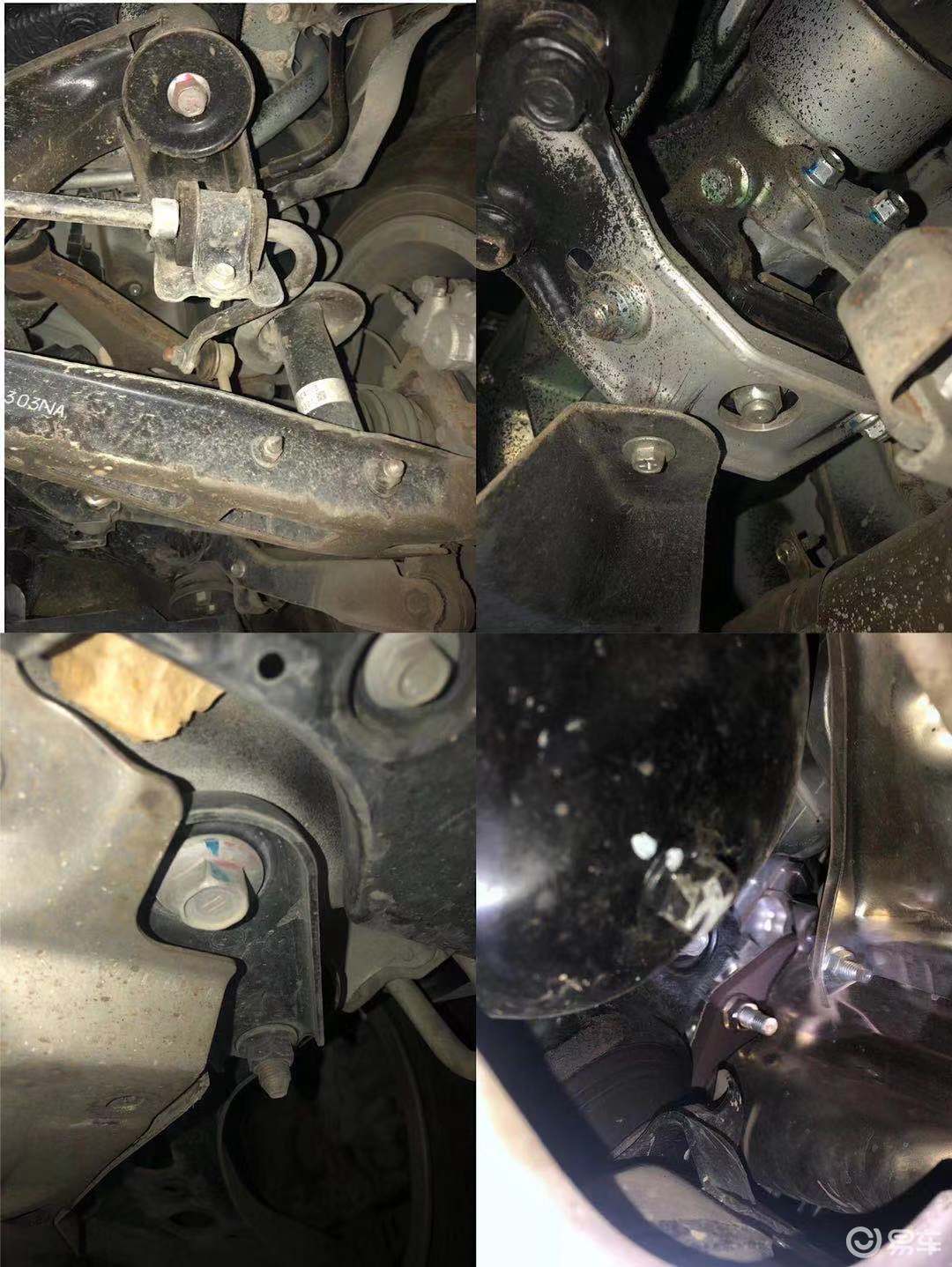 钻进去仔细查看,以及连接处没有油渍,元宝梁螺丝,减震器,下摆臂螺丝均没有拧动的痕迹,悬挂没有改动,这个底盘可以打满分,卖家说的没有改装符合实际。