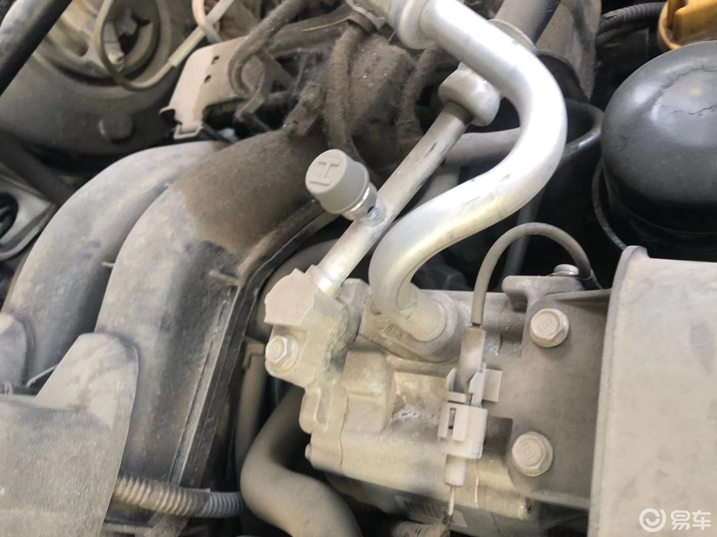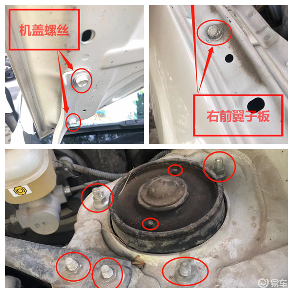 机盖固定螺丝没有拧动拆卸痕机,基本上排除了前部严重事故的可能;右前翼子板也没有拆卸痕迹,说明车身右侧整面的剐蹭不是很严重;减震塔峰也没有拧动拆卸痕迹。