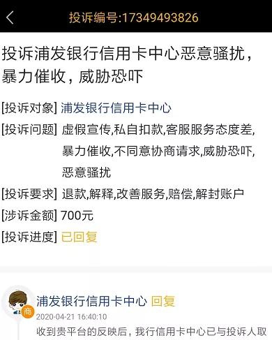 在黑猫投诉平台上,针对浦发信用卡的投诉数量同样也是不断攀升。黑猫投诉平台显示,截至4月22日,针对浦发银行的投诉量为4641件,投诉完成率为70.72%,投诉几乎都与浦发银行信用卡有关,投诉问题集中在浦发信用卡捆绑服务、私自扣费、私自降额、涉嫌暴力催收等问题。