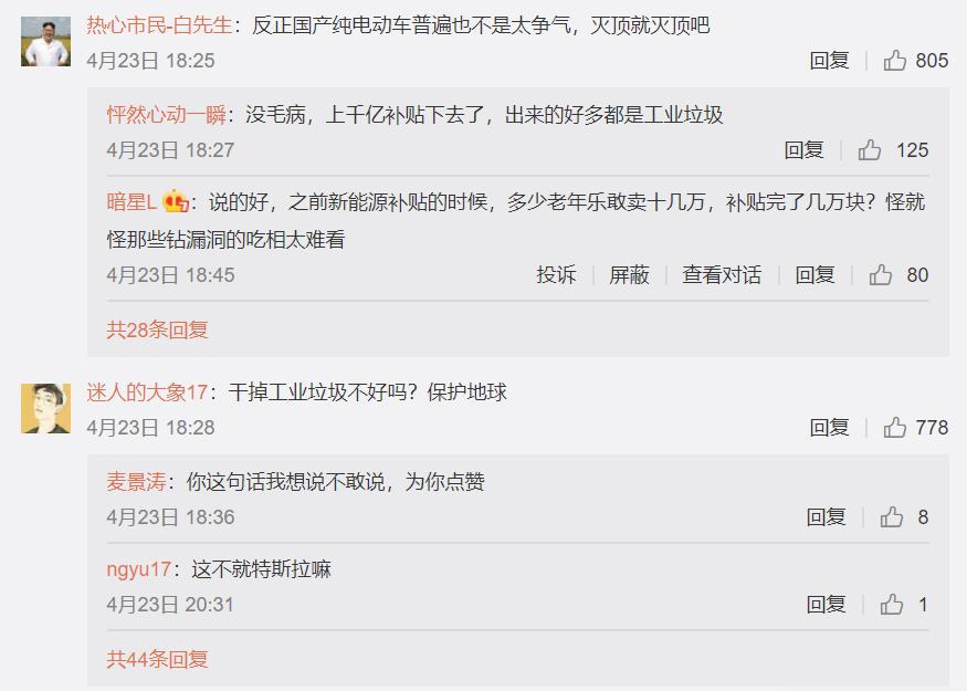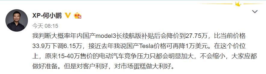 他最后安慰说,只要大家都去买新能源汽车,把市场气氛营造好,蛋糕大了,大家也可以捡一些特斯拉指缝里的肉,也还不错。