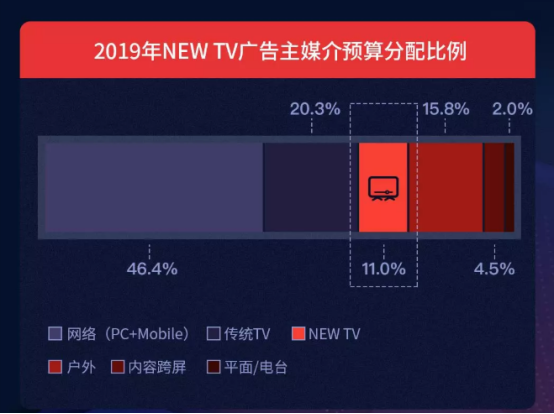 但同时,一组数据也凸显了目前OTT价值延伸的困境,秒针系统调研数据显示,58.3%的受访广告主2019年增投OTT为代表的NEW TV,但广告主媒介预算分配比例却仅有11.0%。
