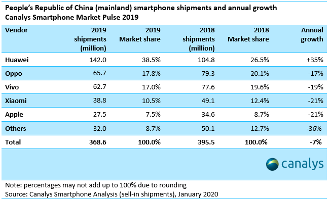 根据Canalys公布的2019年中国市场手机品牌出货数据,OPPO在2019年的手机出货比2018年下降了17%,VIVO更惨,竟然下降了19%!