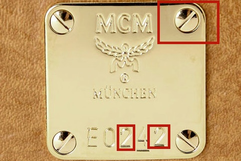 正品MCM四角的螺丝,是可以拧出来的,并非一体,而且螺丝孔及周边打磨精致,有倒角。而且,细心的朋友,会发现用久的螺丝凹槽内能看出铜绿锈迹,这也正是因为正品的五金牌是铜的材质,所以,了解工艺对于鉴定真的很重要。