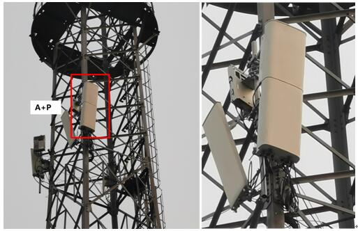 本次创新试点在长春市东环城路旁站点,采用华为商用1.7米A+P设备部署,设备支持800M/900M/1800M/2100M/3.5G电联全频段,并且每个频段支持独立电调,同时开通了电联200M 共建共享。改造前该管塔联通L1800 4G设备安装在第三层,铁塔为多运营商共享,塔上设备较多,空间紧张,使用A+P设备替换原有4G天线的位置,在不增加抱杆的基础上,同时支持4G 和5G,并且保证了5G设备的挂高。