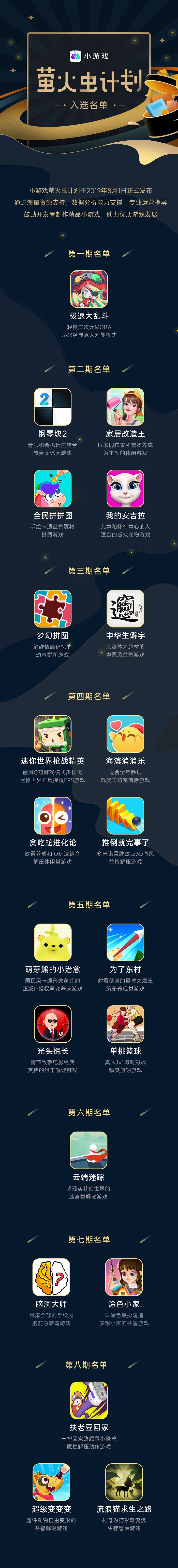 近日,OPPO小游戏公布了第八期的“萤火虫计划”名单,分别是《扶老豆回家》、《超级变变变》和《流浪猫求生之路》。“萤火虫计划”自2019年7月宣布启动以来,总计公布8期,已对21款小游戏进行了多维度的赋能,成为小游戏开发者的利器。OPPO小游戏持续通过海量资源支持、数据分析能力支撑和专业运营指导,对所有入选的小游戏进行产品分发、升级调优、商业化变现等多维度的赋能。(往期入选名单已附在文章末尾)