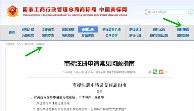 在没有专业人员指导,自行办理的情况下,需要仔细阅读商标申请项下的每一个栏目的内容,如“申请指南”“商品和服务分类”“收费标准”等,其中“商标注册申请常见问题指南”一文详细介绍了填写商标注册申请书的注意事项,如下图。总之,在填写申请书,务必以中国商标网的要求和规定进行,不要在百度上提问!不要看什么攻略!不要相信旁门左道!最权威、最全面的指南全在中国商标网上。
