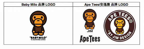 然而,2011 年才成立的“Ape Tees”或“安逸猿”,其品牌 logo、产品设计、店面装修及陈列与 Baby Milo都十分相似,容易造成大众的混淆。