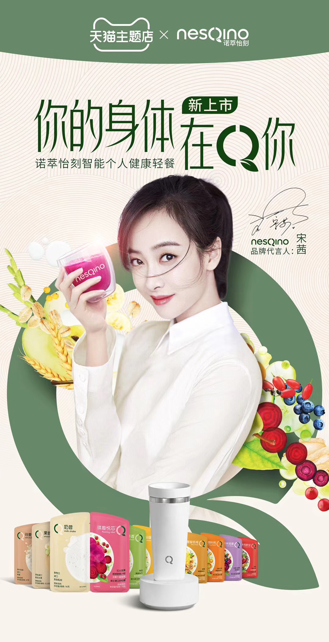 4月17,雀巢nesQino官宣宋茜为代言人,写道:“美好的春天和一杯健康美味的果蔬奶昔最相配!nesQino诺萃怡刻品牌代言人@宋茜 和她最爱的火龙果蔓越莓奶昔带给大家春天的问候。”