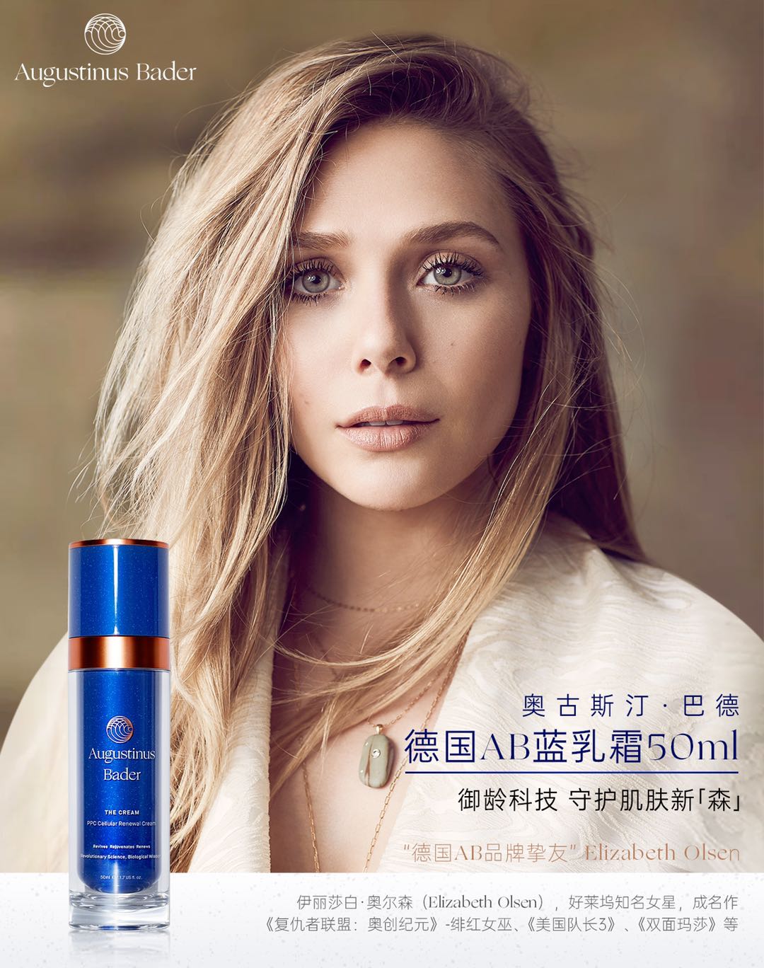 4月26日,德国AB官宣绯红女巫为品牌挚友:“Elizabeth Olsen上线,“能量逆龄女神” 奥妹即将在线解锁逆转时光的【奥】秘!”