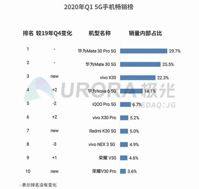 而在5G手机的的销量榜单上,华为和vivo分别吃下了其中的9个席位,只留给小米旗下的Redmi K30一席,也足以建的华为和vivo在5G产品布局层面的成功。