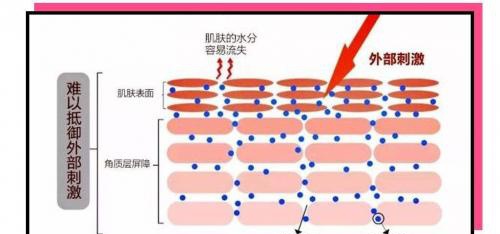 我们肌肤的防御功能主要来自于肌肤的外衣——肌肤屏障,它好比是一道墙,角质细胞和细胞间脂质就是砖块和灰浆。正常情况下这堵墙是严严实实的,能将自身的水分牢牢锁住。当肌肤屏障受损,就像砖块和砖块之间出现裂隙、灰浆流失、砖块被破坏等问题,就会导致自身皮肤保不住水的情况,就会让皮肤变得敏感,丧失锁水能力,变得干痒泛红。而肌肤的锁水能力受损,水分从裂开的墙缝中溜走,反过来会加重屏障受损,越干燥越受损,越受损越干燥。