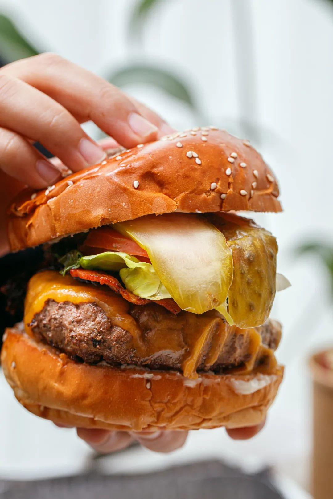 果然,和牛汉堡吃起来最大还原了餐厅的味道,厚厚的和牛肉饼入口是爆浆一般的爽感,配上酸黄瓜和番茄,恰到好处地起到解腻的作用,完全是我理想中汉堡的样子,太满足了。