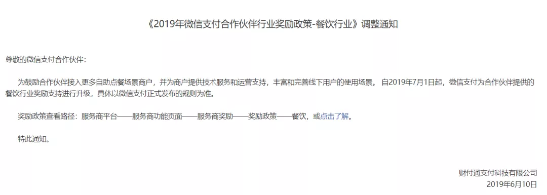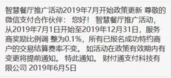 据移动支付网从多个从业者了解到,彼时微信支付的确要对补贴力度进行了调整,将餐饮类补贴从0.2%下降到0.1%。也就是说,微信支付的餐饮行业返佣激励下降了一半。