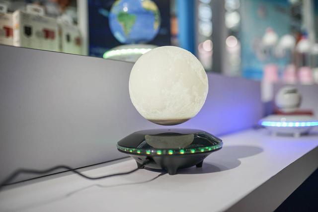 还有磁悬浮月球,其实它是个灯,晚上在房间里黑色的底座仿佛隐形,只有一个发光的月球悬浮在桌面上。