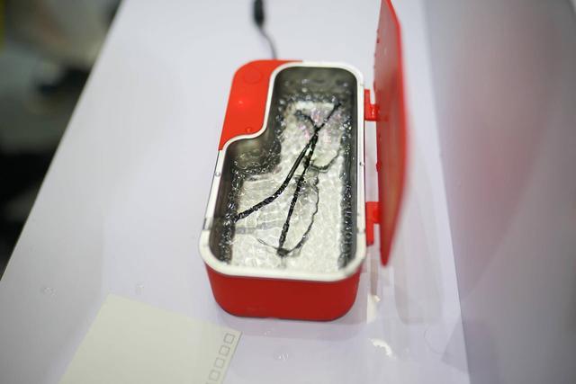 其实这是一个超声波眼镜盒,只要装水、通电、放入眼镜,5 分钟后就能取出近乎全新的眼镜,非常神奇。