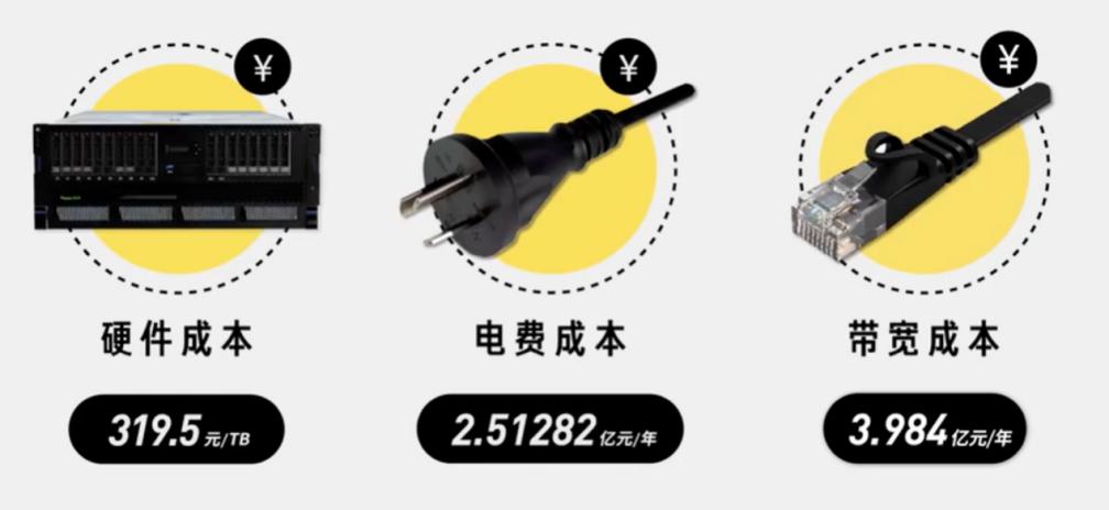 不过,高处不胜寒这句话用在百度网盘身上也最为贴切不过。一个最现实的问题,网盘的运营需要百度在硬件、宽带资源、后期维护等方面投入巨大的人力物力。此前“回形针”曾做过一期关于网盘运营成本的趣味视频。视频以百度阳泉数据中心为例,阳泉数据中心共有16万个服务器,可以存储约614万TB的数据。如果都使用8TBx18规格的存储服务器,则意味着共有约4.27万个存储服务器,按照每块8TB硬盘2000元、每台服务器10000元进行粗略估算,硬件成本就是19.6亿元。