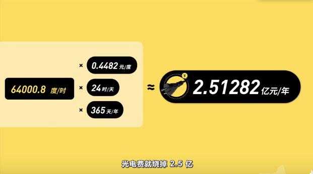 除此之外,这种规模的数据中心每年电费也是十分高昂的。据回形针视频介绍,即使在非常节能的“北极”整机柜中,每6台服务器也需要1台2400瓦的电源进行集中供电,而数据中心每小时要耗费6.4万度。若按照阳泉市的商业用电标准0.45元/度来进行核算,每年电费消耗高达2.5亿元。