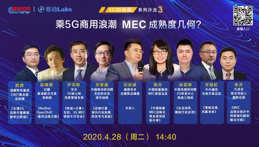 4月28日,通信世界全媒体5G“加速跑”系列沙龙第三期——“乘5G商用浪潮,MEC成熟度几何?”如期上线,专家大咖在线答疑,指点迷津,探寻MEC规模商用部署在2B及2C方面的创新应用,深挖MEC商业模式,积极促进产业发展成熟,推动5G+MEC行业落地。