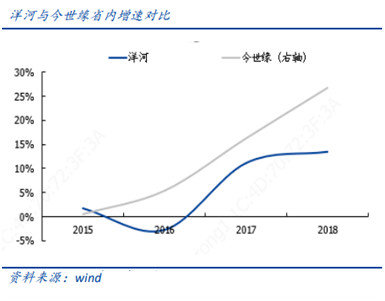 洋河,是以销售起家,尤其又是在南京打下根基的,可以说,整个苏南,或者说整个江苏都是洋河的大本营,而且他在江苏还不是在四川或者安徽,洋河的地位,这么多年,按理说,是不会被撼动的,但是从数据上看,被今世缘这个不算后来的后期之秀甩开了。根据数据,2017 年以来洋河省内营收增速保持在小两位数,今世缘省内营收增速持续高增长,2018 年增速更是达到 28%,较洋河高 13pct。从重点市场看,今年以来今世缘在重点市场表现亮眼,2019H1 今世缘在南京市场增速达 50%,在徐州市场增速达 60%。