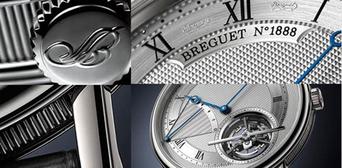 宝玑的六大象征:1.精美脱俗的手工镌刻表盘;2.镂空偏心月形蓝钢指针;3. 独立焊接式表耳;4. 双排串珠形表框坑纹;5. 独一无二的生产编号;6. 只有在光线以斜角照射时才会显现出的隐匿签名。这些象征代表了宝玑的传统,更向收藏家提供了不可雄辩的真伪证明。