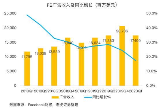 疫情笼罩下,全球广告市场前景暗淡。Facebook最新财报显示,一季度用户活跃上升,广告收入保持稳增长,盘后股价涨逾6%。FB凭借一份超预期的财报正成为新的防御性选择。