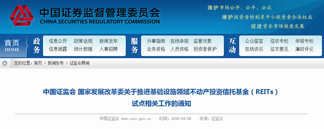 证监会有关负责人指出,从基础设施领域突破REITs是比较好的选择,中国形成了大量优质的基础设施项目;通过REITs进一步拉动投资;尤其在当下房地产调控的前提下,REITs不会对房地产构成影响。