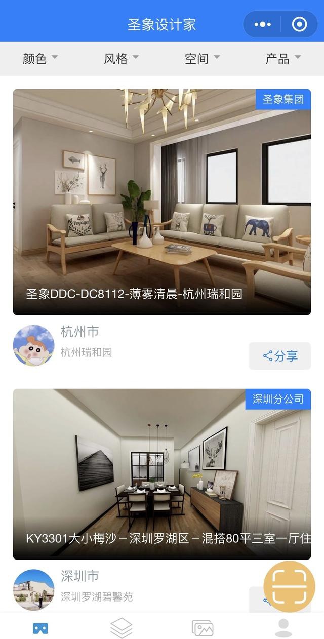 为了给数字店和小程序引流,圣象选择了更多数字流量入口合作,比如二手房数字流量、数字设计平台流量、新媒体广告平台流量、社交媒体内容营销流量、天猫京东等电商平台导入流量等,全面助力经销商提升业绩。“目前,我们可以实现为全国所有1780个经销商定向投放不同区域、不同属性的新媒体个性化广告。”王晓宇表示,为了让效果最大化,每一个传播载体都指向营销数字平台。比如,要求设计师每天都出各个品类爆款产品的图,上面有产品信息,还有两个二维码,一个二维码扫描后,能立即进入VR空间看见该产品的装修实景以及户型信息。通过另外一个二维码,则可以直接进入到“圣象设计家”的小程序,享受更多线上服务,所有的环节,都是打通的。