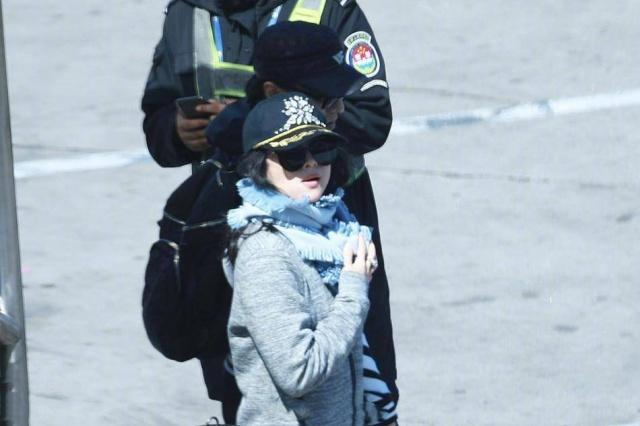 脖颈间搭配浅蓝色围巾,可是整体风格又呈现出一种无风格的混搭效果,看着太乱了。而女神私下也是爱穿运动鞋,而且还非常随性直接拖拉着鞋子,硬是把运动鞋当拖鞋穿了,而且红色的运动鞋显得非常突兀,整体感觉太奇怪了。