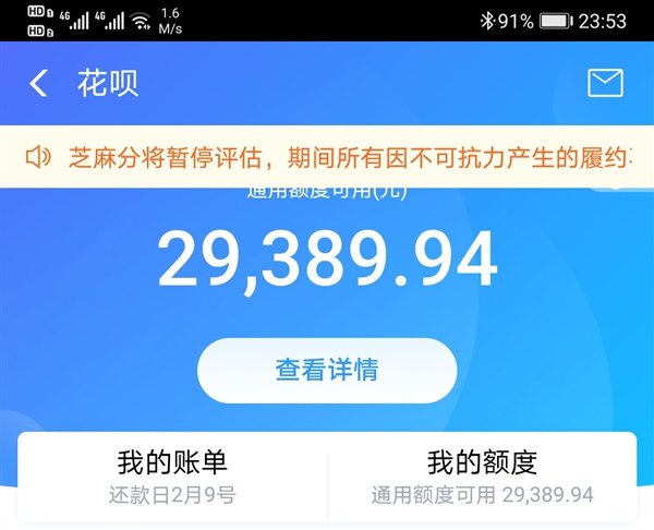 值得注意的是,这份通知是在支付宝芝麻信用、花呗两个功能内同时发出的,不少网友第一感觉就是花呗暂时不用还了。