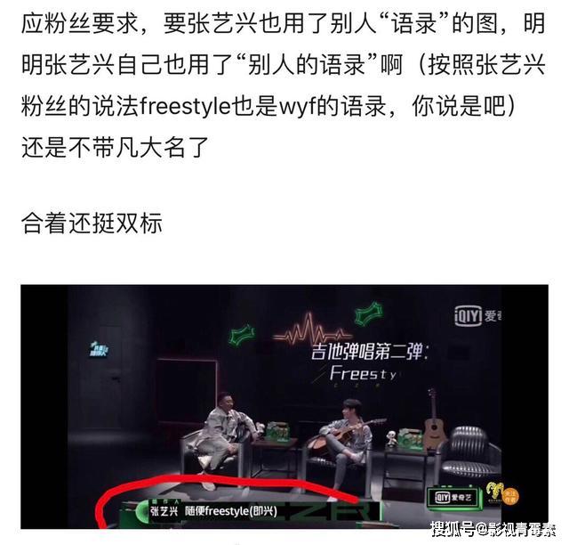 只不过,freestyle恰巧就被吴亦凡说红了,balance恰巧被张艺兴说红了,别人也是可以说的。《中国有嘻哈》是2017年夏天播出的,《偶像练习生》是2018年1月播出的,隔了只有半年的时间,张艺兴有意模仿吴亦凡,想造出一个流行词出来,最终他成功了。