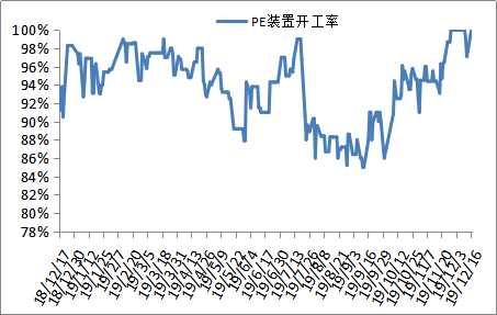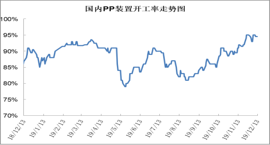 近期PP开工率维持高位。12月以来,PP检修装置明显减少,目前除6套长期停车装置之外,仅剩下三套装置处于检修状态,且年前暂无其他大修计划,预计PP将继续维持高开工,在产能基数增加的背景下,后期供应压力越来越大。