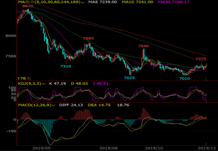 PP主力止跌反弹。上周PP期价冲高回落,有破位下行迹象,不过周五收出十字星后本周反弹。目前来看MACD红柱即将变绿,上方多条均线压制,空头占优;不过此次下跌并未有效破位,短期或震荡盘整后再次下跌。