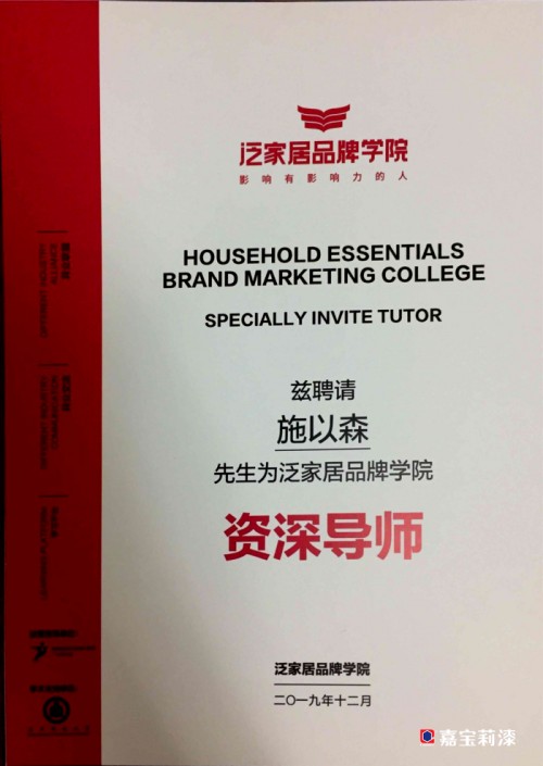 盛典上正式揭晓了“名润榜”亚太泛家居设计推荐品牌获奖名单。嘉宝莉凭借深厚的行业底蕴、先进的企业理念和卓越的产品设计斩获殊荣,成为艺术涂料行业五大推荐品牌之一;嘉宝莉全装修产品事业部副总经理施以森也被评为“泛家居品牌学院资深导师”,双项殊荣彰显了嘉宝莉在创设品牌理念、树立品牌形象、打造高质素产品设计过程中的不懈努力获得了业界和市场高度认可。