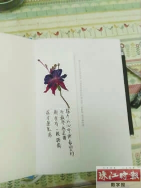 相比于长辈们的养生做法,年轻一代对于年花年桔年货的处理,也有着不少创意,有的把旧利是封做成灯笼,有的把花盆改成种菜盆,还有的,则像黄霜仪那样把年花制作成漂亮的书签。“差不多凋谢的年花,我喜欢用来做成书签,这样既美观又不浪费。”家住罗村花苑B区的黄霜仪,就现场给笔者示范了如何制作“年花书签”。