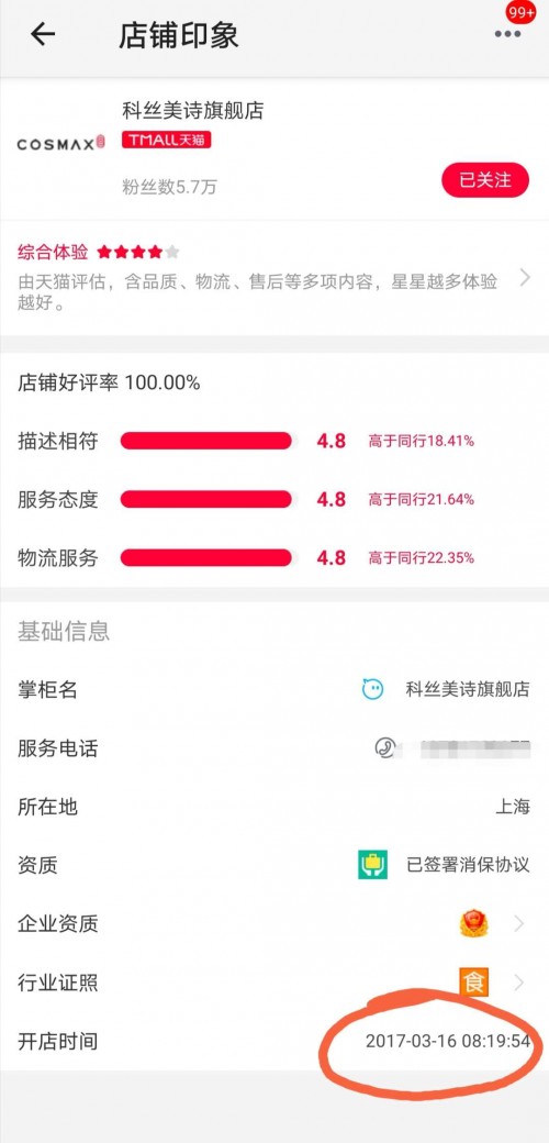 小编还有新的发现,科丝美诗很早就规划着开启化妆品分销和平台业务,2017年,成立科丝美诗天猫旗舰店,掐头去尾,科丝美诗已经开了四年网店了。