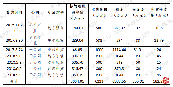 界龙实业的融资租赁期限均为3年,均发生在2018年,租入的主要是热压设备和制浆设备,总共为公司融资5,862万元。