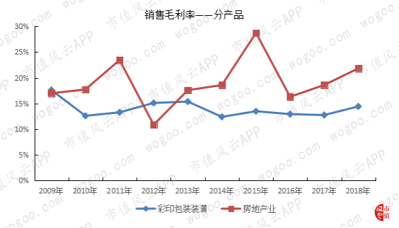 把界龙实业的印刷业务和房地产业务分别拿出来看,印刷业务的销售毛利率比同行业低出更多,反而是房地产业务在毛利层面拉了公司一把。