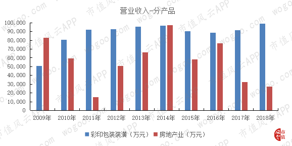 最近十年,界龙实业几乎在原地踏步。从2009年至2018年营业收入情况看,界龙实业营业收入不增反降。