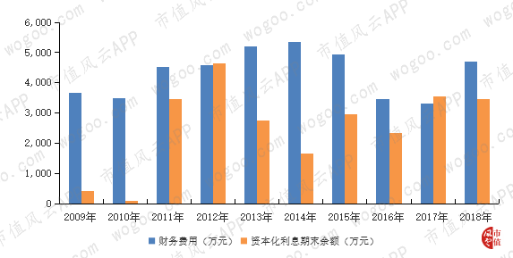 界龙实业以短期有息负债为主的债务融资结构,不仅面临着巨大的短期偿债压力,同时还有较高的利息支出。最近十年,公司的财务费用基本维持在三千万以上;同时,还有一部分利息进行了资本化,计入了开发成本。
