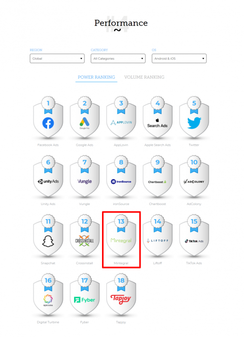 Mintegral 作为汇量科技重点部署的程序化互动式广告平台,于 2015 年成立,后于 2018 年开始独立运营,是亚洲最大的移动广告平台之一,也是进入本次《广告平台综合表现报告》全球实力榜中唯二的中国平台。