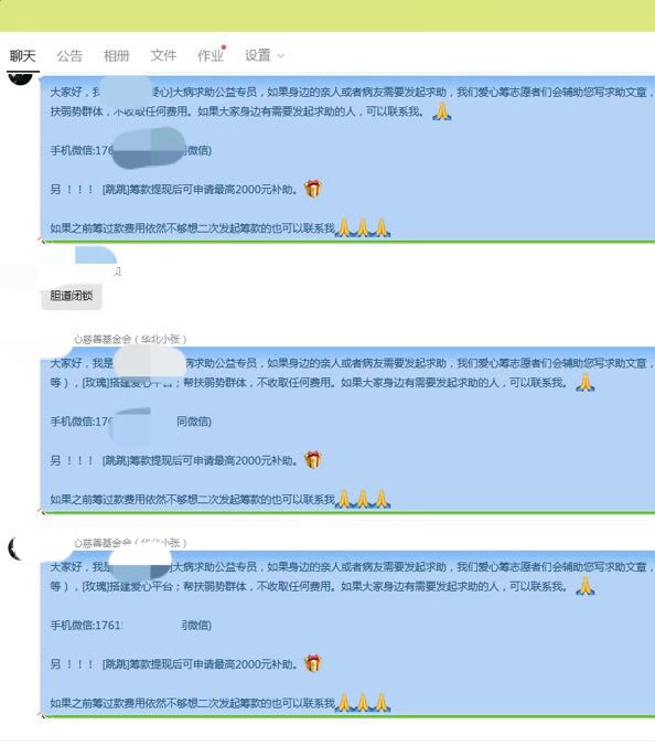 推广宣传并不仅限于线下。宁夏银川的周先生曾因孩子患胆道闭锁加入了一些病友群,他向南都记者表示,几家平台的“大病求助公益专员”在群里刷屏的行为让他感到困惑。