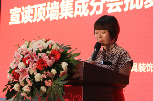 四川省建材家具装饰商会顶墙集成分会第一届当选秘书长张喜凤女士上台宣读了顶墙集成分会第一届理事会工作计划报告,包括加强协会自身建设,提高协会服务能力;建立行业自律规范,促进完善行业自律制度;做好行业宣传工作,树立行业正面形象;完善行业标准体系,引领行业健康发展等内容。