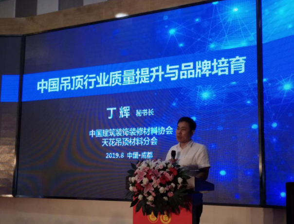 中国建筑装饰装修材料协会、天花吊顶材料分会秘书长丁辉为副会长单位四川远鸣科技公司、四川中沃建材有限公司、成都隆景达科技有限公司、广汉鑫雅憩有限公司授牌。