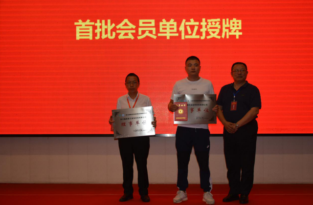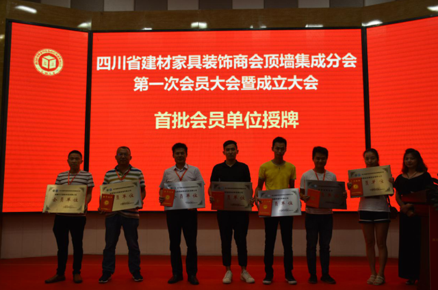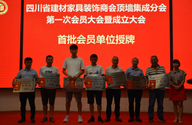 四川省建材家具装饰商会执行秘书长罗跃玲上台为会员单位四川太萌塑钢型材科技有限公司、成都傲辉建材有限公司、成都渭水机械设备有限公司、四川朗玺装饰材料有限公司、成都六六塑机科技有限公司、成都兴豪益金属制品有限公司、成都金桔边线、四川安耐吉装饰材料有限公司、四川东鑫贸易责任有限公司、成都鑫亿家集成吊顶、成都市金海霸新型建材有限公司、四川壹零零建材有限公司、成都市佳顶装饰材料有限公司、成都明川化工有限公司授牌。