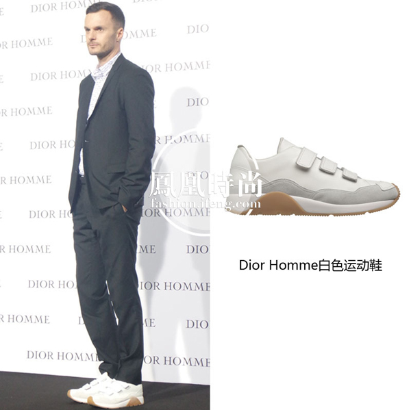 白色运动鞋Kris Van Assche把它演绎的十分起范儿。相比男星们穿的大皮鞋,Kris Van Assche把男星们都比下去了。