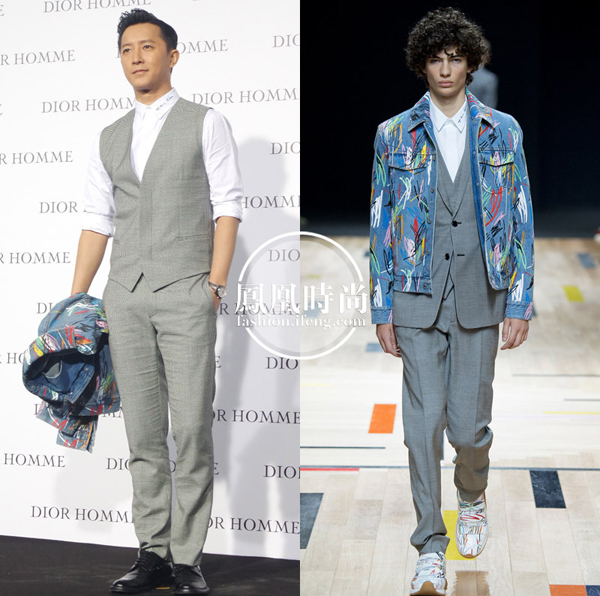 韩庚身穿灰色的西服套装,手拿外套亮相秀场,虽然手拿牛仔外套一样很酷但是还是有不少网友发表留言“韩庚快把外套穿上吧。”