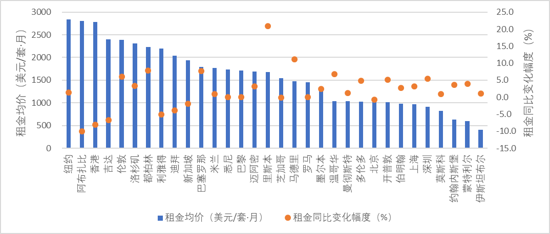 租赁市场。CBRE发布的2019年《全球生活报告》显示(图9),住房租金最高的城市是美国纽约;增幅最大的区域是欧洲西部,葡萄牙的里斯本、西班牙的马德里和巴塞罗那、爱尔兰的都柏林在2020年仍值得关注;加拿大的温哥华、多伦多、蒙特利尔涨幅均位于前10,住房空置率接近历史最低水平;南非的开普敦和约翰内斯堡也位于前列。租赁价格高企的中东石油出口国家租金加速下滑,2020年仍需控制风险,谨慎投资。