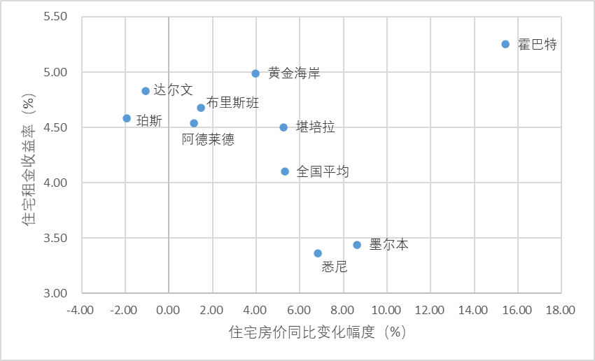 墨尔本在放宽买方“融资限制”后,购房需求集中释放。2019年,墨尔本人口增长全国第一,进一步推动住房需求增长和房价上涨。第四季度,住宅房价同比增长5.0%,全年同比增长8.7%。悉尼的表现也较为强劲,全年房价同比上涨5.7%。但由于其郊区的供过于求,住房空置率上升到3%以上,使得2019年全年房屋租金下降了2.8%。