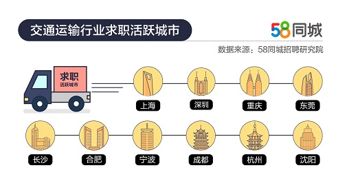 从重点城市来看,58同城招聘研究院数据表明,今年3月,上海、深圳、重庆、东莞、长沙交通运输、仓储和邮政业求职活跃度高。一方面,上述城市汇聚着交通物流企业的全国总部或区域总部,吸引了大量求职者。另一方面,这些城市的平均收入水平较高,能为求职者带来更丰厚的工作回报,因此成为交通行业求职热门城市。从增幅上看,上海、合肥、杭州、宁波等长三角城市群求职者投递次数,3月求职环比平均增长较高。由于交通行业一般情况下春节后复工较早,而新冠肺炎疫情影响了复工时间,求职者积压已久的求职需求集中释放,就导致部分区域求职需求环比大幅度提升。