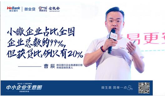 另一主办方微众银行微业贷,则是一直为中小微企业提供流动资金贷款支持的平台,针对小微企业借款特点,推出针对性贷款产品,满足企业金融综合需求,同时致力提供知识迭代、资源链接、商机交换等全方位企业升级服务,让中小微企业主“做生意,简单一点”。
